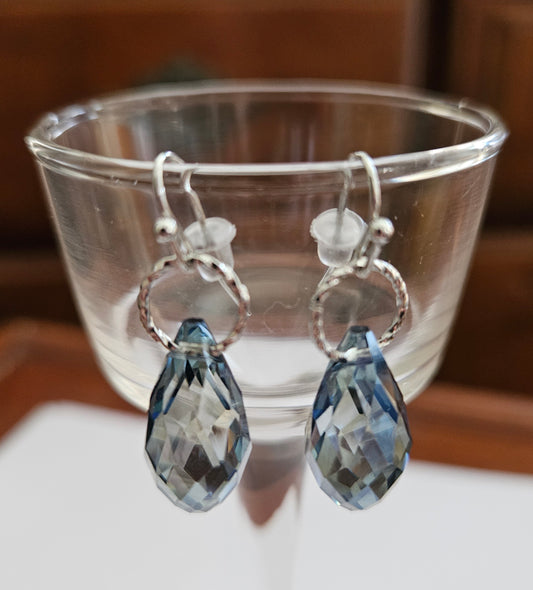 Blue crystal teardrop earrings, French hook, handmade